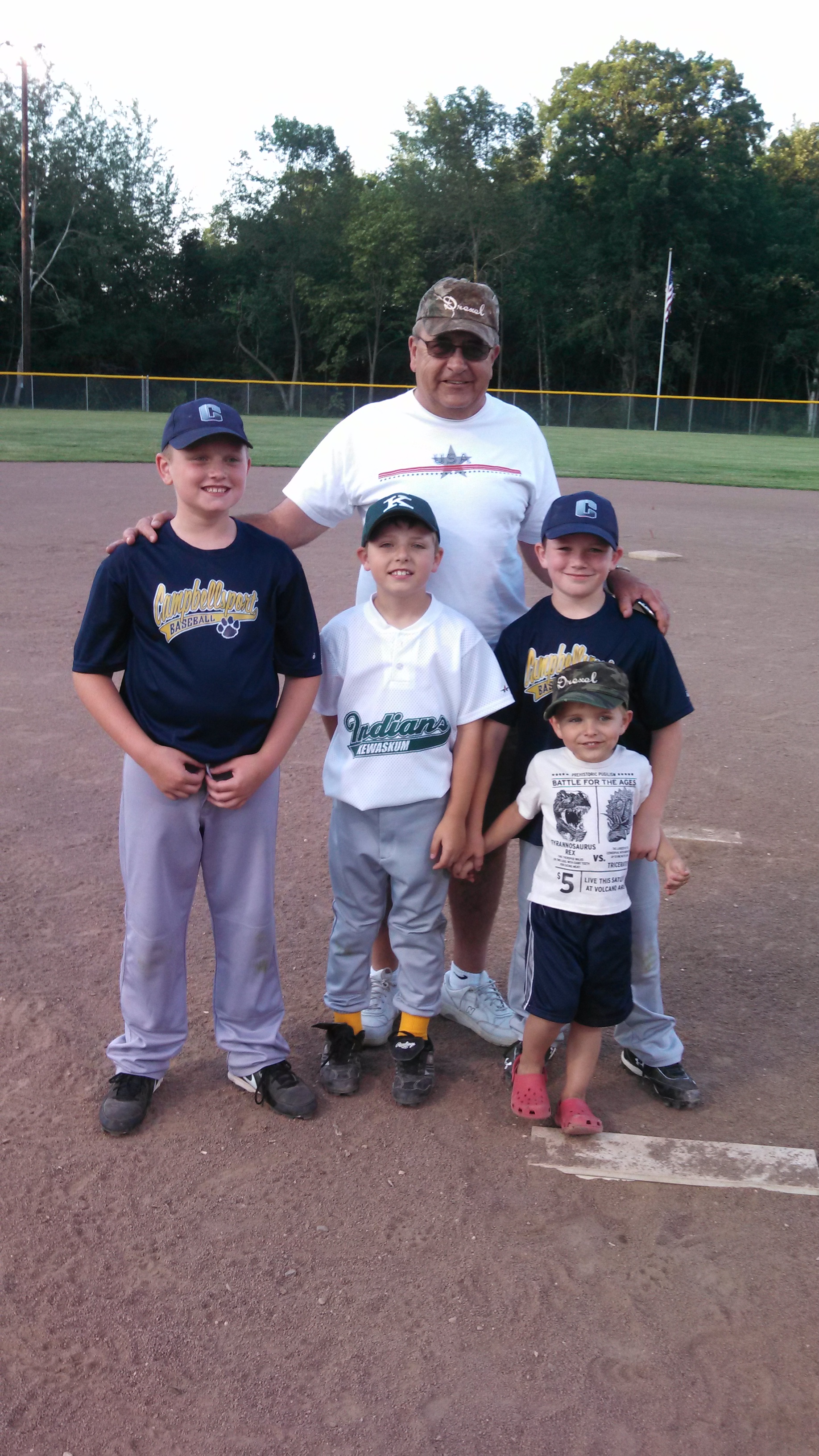 Pictured: My dad, two of my nephews, and my two kids. Grandpa passed down his lack of ball skills to me and then these youth. But he also passed down the traits to try hard and have fun. I say, that’s a win every time!
