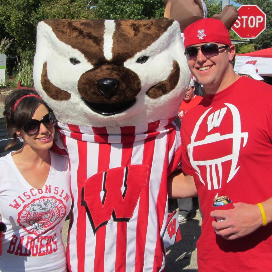 Matt, Millwork Guru and assistant store leader in Brookfield, aka “Gronk,” pictured with his wife Cari and some dude in a Bucky Badger costume.
