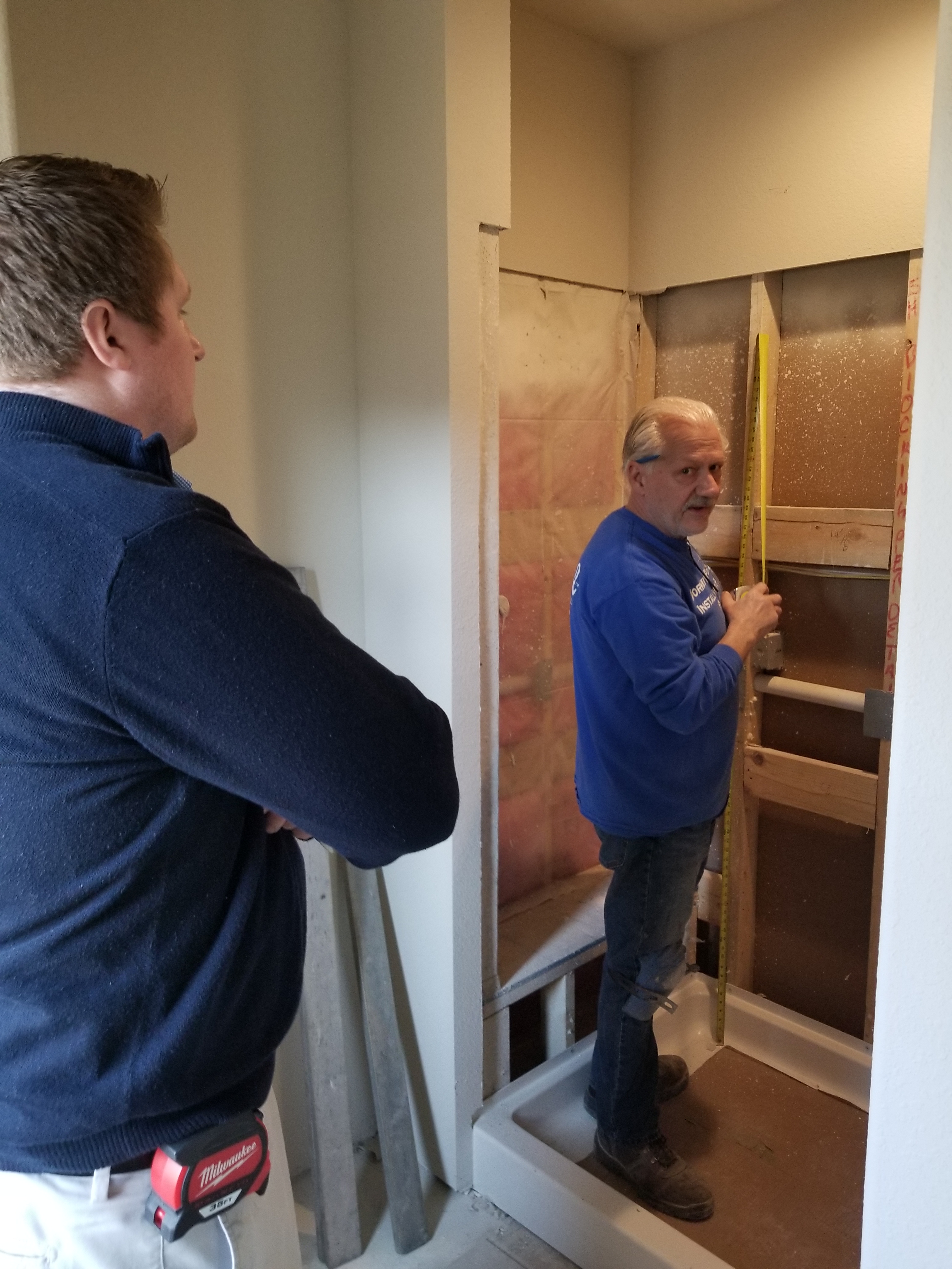 So… the installer (unpaid) shows up, the homeowner shows up (not also the best time for them, but he COMMUNICATES why it is so important) and Shawn all show up and go through it. The grout, the angles, the shelf height, the RIGHT EXPECTATIONS. They debate, laugh, shake hands and move forward.