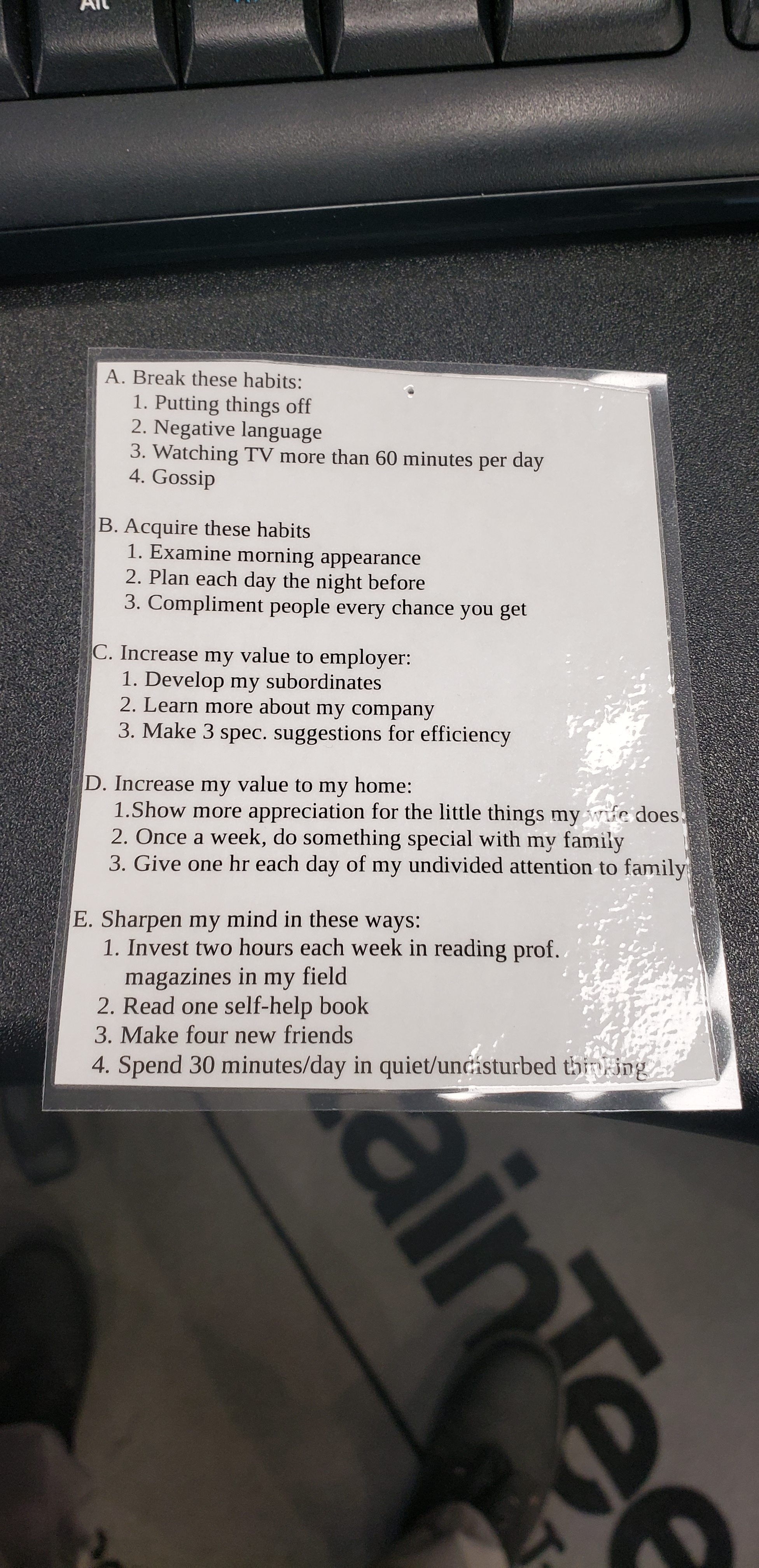 When you are about to make a decision remember how it will affect you TOMORROW. Trying to lose a few pounds and crush a donut? How will you remember that donut TOMORROW? Tapped out on cash, put a few more bucks on the credit card? How will it affect you tomorrow? Easy example… stay for that extra drink? How will affect you tomorrow?